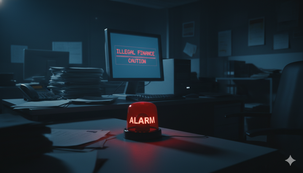ここからが、本記事の最も重要なセクションです。「24時間・即時入金」を求める切迫した状況下で、絶対に手を出してはならない違法なサービスが存在します。