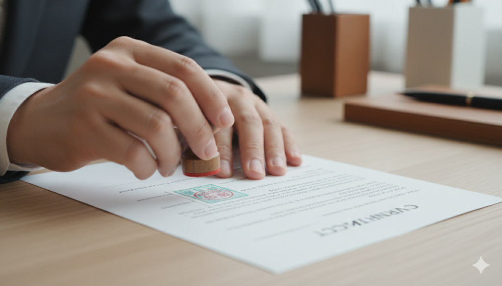 そして、最も重要なのが「消印(割印)」です。印紙を貼っただけでは、税金を納めたことにはなりません。印紙と書類の台紙にまたがるように印鑑を押すか、自筆で署名をすることで「この印紙は使用済みである」ことを証明する必要があります。