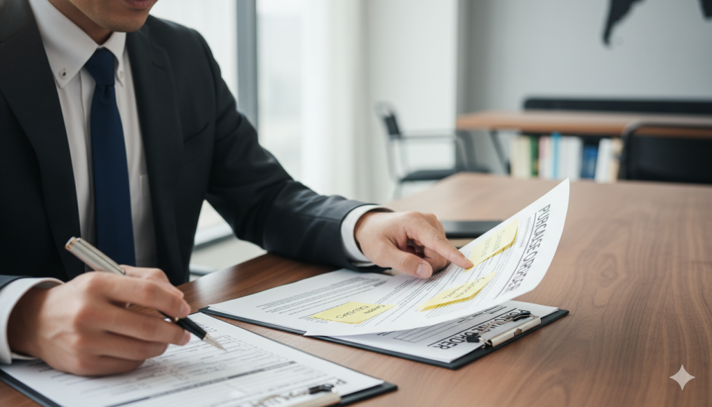 英文注文書(Purchase Order)は、海外取引における法的契約の基礎となる書類です。正確な情報を盛り込むことは、自分たちのビジネスを守り、相手からの信頼を築くための第一歩となります。