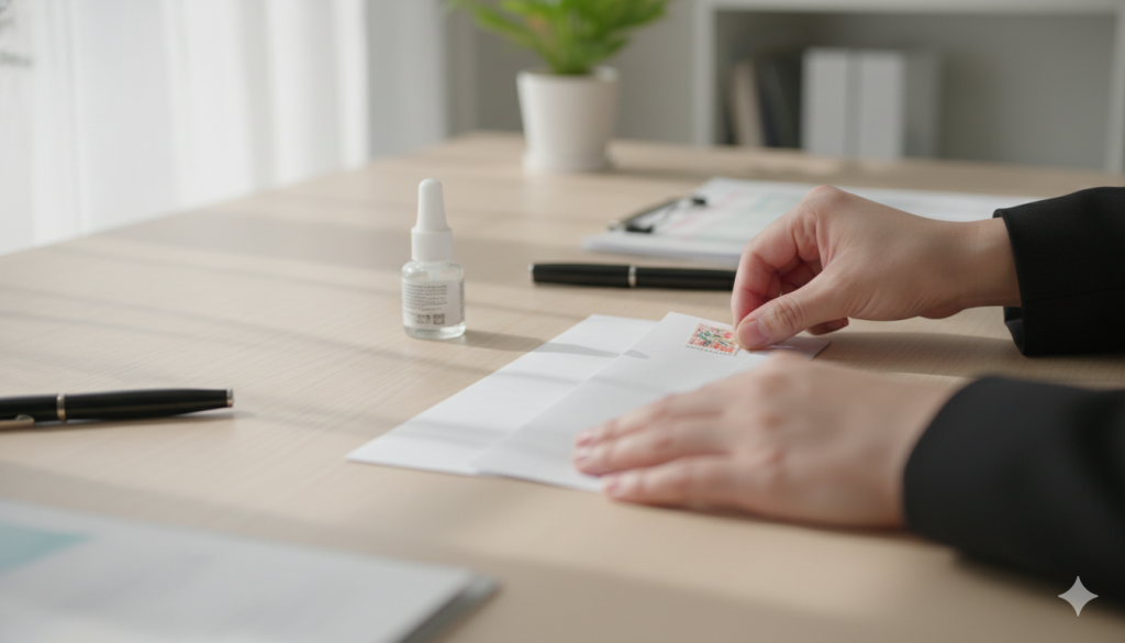 - 封筒は清潔感のある白を選び、追跡可能な方法でリスクを管理する